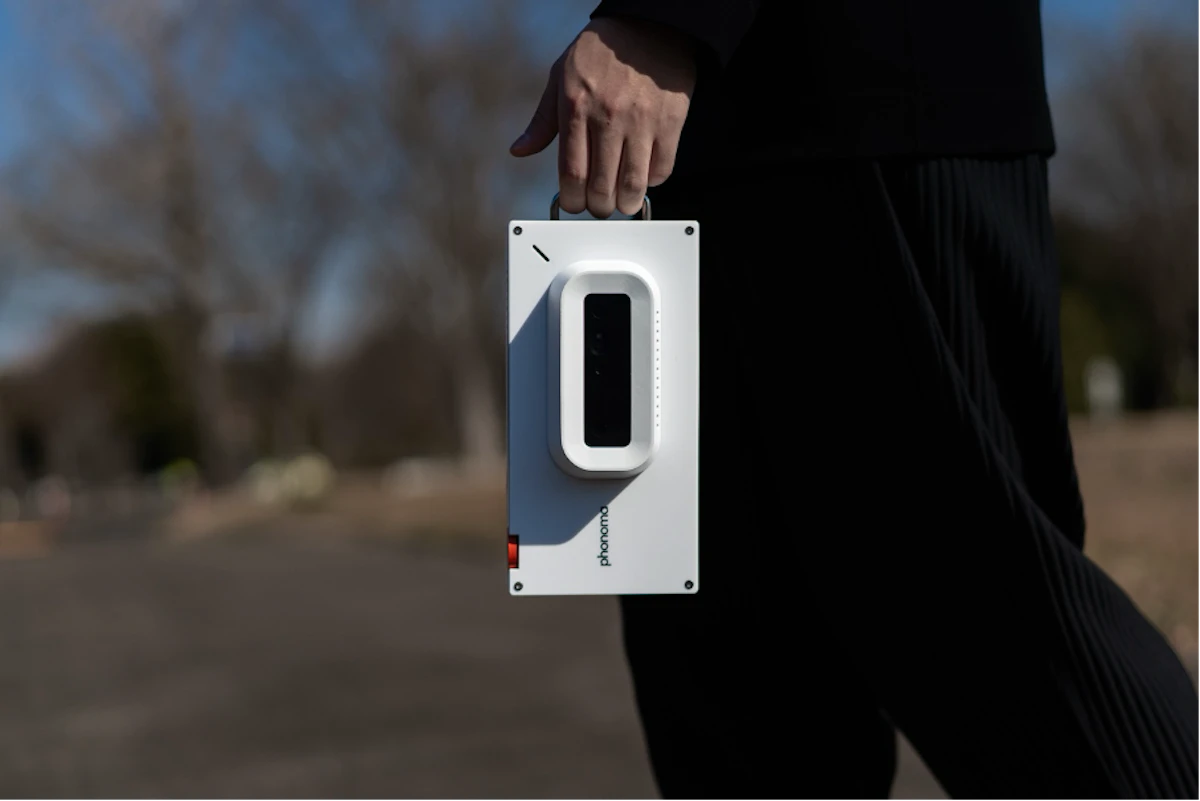 phonomaは、空間を音の粒(phonon)として捉え、音楽表現へと昇華させる装置(-machine)というコンセプトのもと開発された電子楽器である。phonomaは、カメラのように構えて演奏するのが最大の特徴となっており、様々な環境に持ち運び、その場その瞬間で生まれる音色・旋律との一期一会を楽しむことができる。搭載された目(Depth Camera)によって捉えた空間の明るさや色味、人・オブジェクトの数といった複数のデータによってダイレクトに反映させることができ、演奏者が捉えきれない空間要素を楽器自身が拾い上げ、演奏者にフィードバックする。これにより、演奏者と楽器の間に協奏状態を生み出し、より多彩な即興演奏が可能となっている。