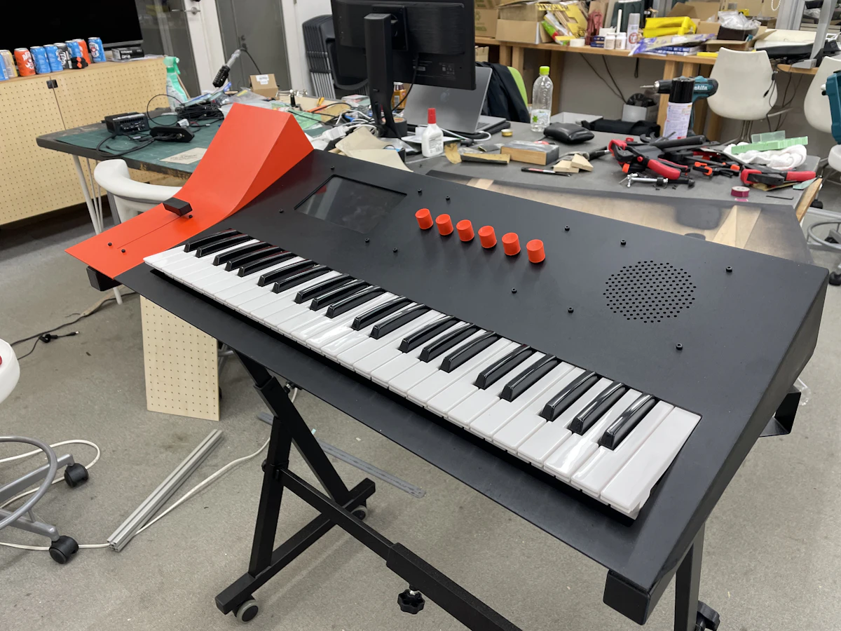 旧モデルでは、MIDI入力による演奏を前提としていたが、その都度MIDIデバイスを用意する必要があり、利便性が低かった。そこで、フルサイズキーボードを組み込んだシンセサイザーとして設計をしなおした。キーボードに加えてスピーカー、コントロールノブ、ディスプレイを搭載することで、単体でより迫力のある演奏が可能となる。