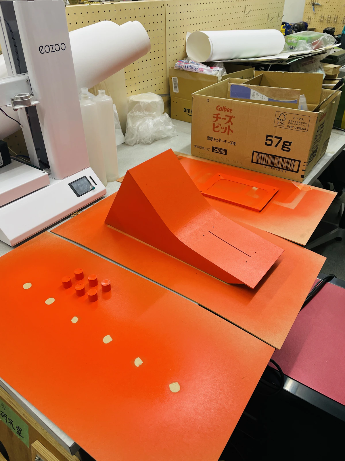ベースの形状が出来上がったあと、全体の塗装を行った。LiDARが組み込まれている部分をオレンジ色のアクセントカラーにすることで、どこが音に直接的に影響するのかわかりやすいようなカラーリングにした。