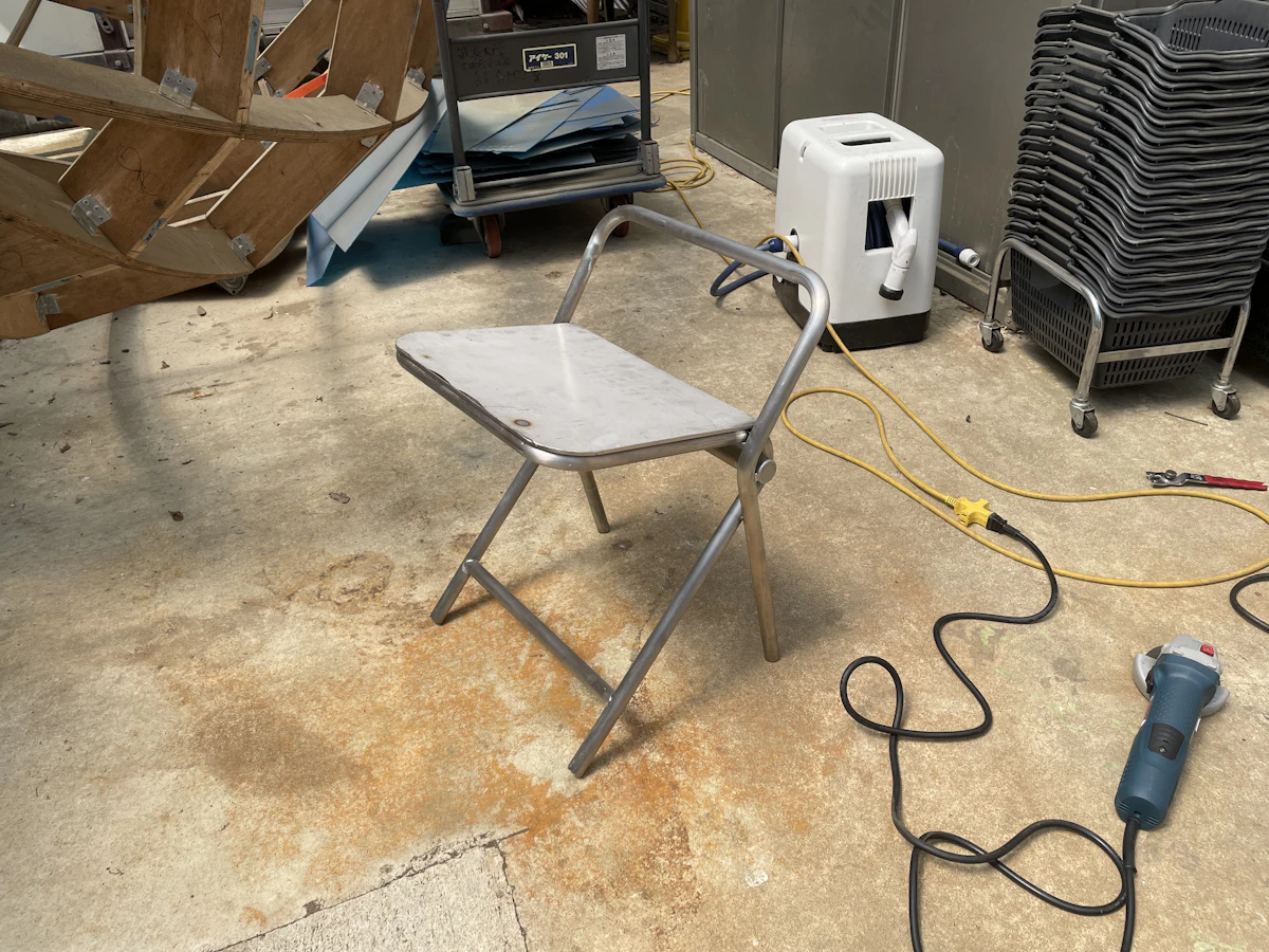 プロトタイプを通して、フットペダルスイッチを用いたアナログスイッチ方式を採用することになった。最終作品では、アルミパイプを使ってフレームを成形することで制作した。座ることで物理的に「カチッ」と音がすることで不思議と気持ちが切り替わるプロダクトになった。