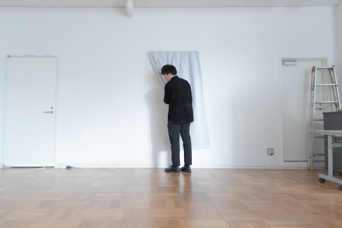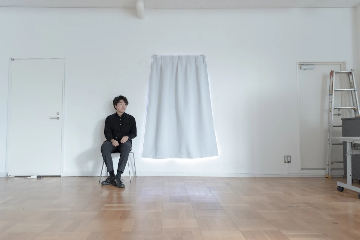 家の住み替えはハードルが高いため、今住んでいる部屋に少しの工夫をするだけで、空間に広がりやゆとりを与える方法はないかと考えた。この課題について考え込んで徹夜をした第2週の朝に、カーテンから溢れる光を見て、解放感というか希望を感じた時、カーテンを使った照明はどうだろうと思いついた。
