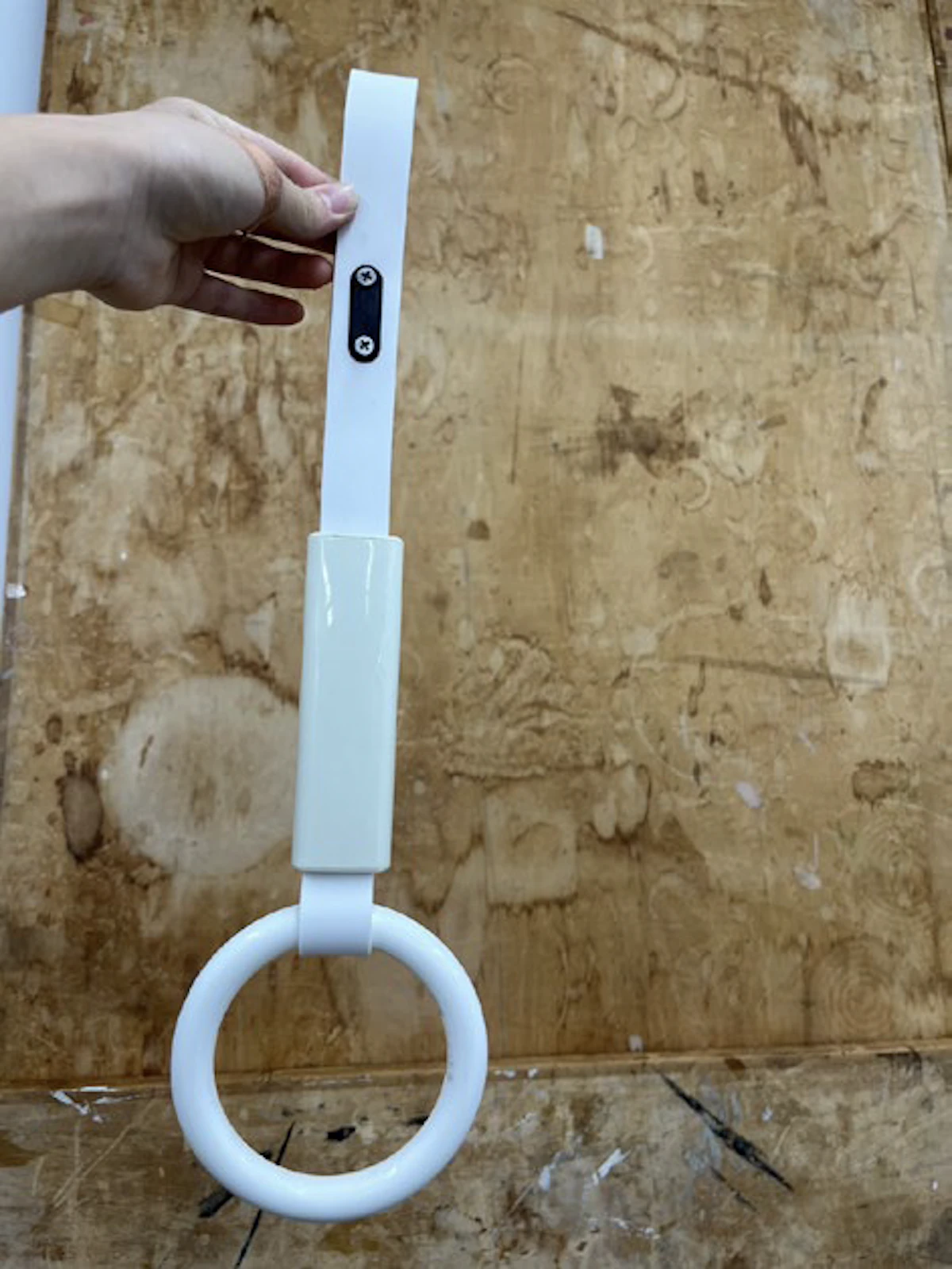 いくつかプロトタイプを作ってみたが、意外にも「吊り革」らしさを再現するのが難しいことに気づいた。そこで実際に吊り革を買って分解することで、何が吊り革たらしめるのか研究した。