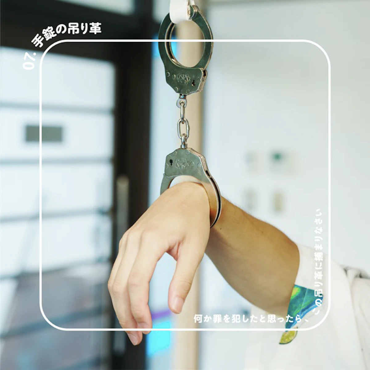 手錠の吊り革。吊り革に腕ごと通して掴まっているサラリーマンを見かける。電車に捕まって、このままどこか(会社)に連れて行かれてしまうんだな... と、そんな妄想をして制作した。
